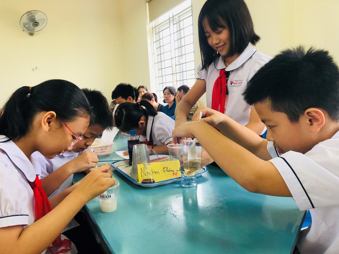Trong tiết học, giáo viên đã dẫn dắt học sinh từ câu chuyện STEM để định hướng cho sản phẩm STEM với các tiêu chí cụ thể. HS được hình thành kiến thức nền qua các thí nghiệm. Từ đó, HS đề xuất và lựa chọn giải pháp chế tạo sản phẩm, cùng nhau thực hành, thử nghiệm đánh giá sản phẩm.