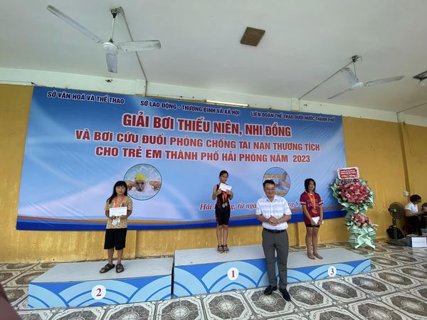Xin chúc mừng em Nguyễn Hoàng Minh Châu học sinh lớp 4A1 đạt huy chương bạc “Giải Bơi thiếu niên, nhi đồng và Bơi cứu đuối phòng, chống tai nạn, thương tích cho trẻ em thành phố Hải Phòng năm 2023”