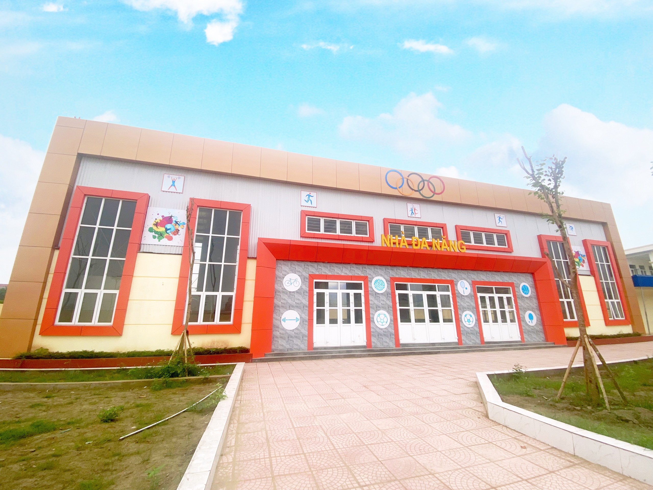 Nhà đa năng trong nhà trường giúp 1 phần lớp giúp các em học sinh duy trì thời gian tập luyện, không bị ảnh hưởng bởi các tác nhân như thời tiết, các yếu tố gián tiếp bên ngoài...