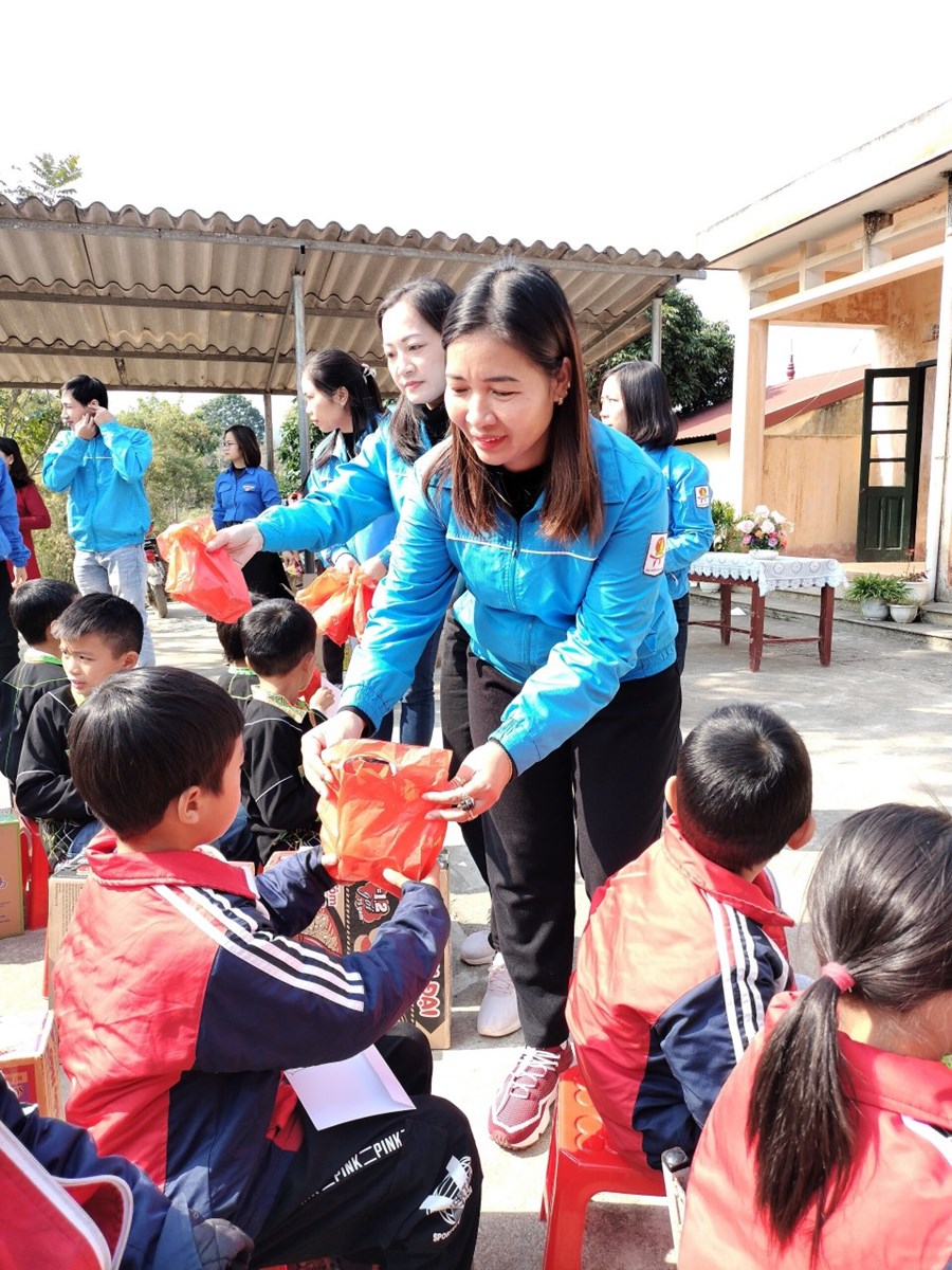 Đoàn trao 70 suất quà (gồm tiền mặt, mì tôm, sữa, bánh kẹo, dụng cụ học tập) cho 70 học sinh có hoàn cảnh khó khăn, trị giá 48 triệu đồng.