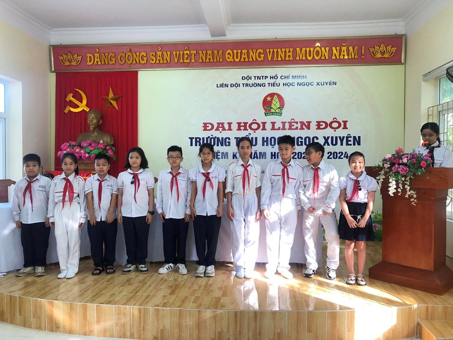 Liên đội trường TH Ngọc Xuyên tổ chức Đại hội Liên đội nhiệm kì năm học 2023-2024, bầu ra 11 bạn vào BCH Liên đội mới