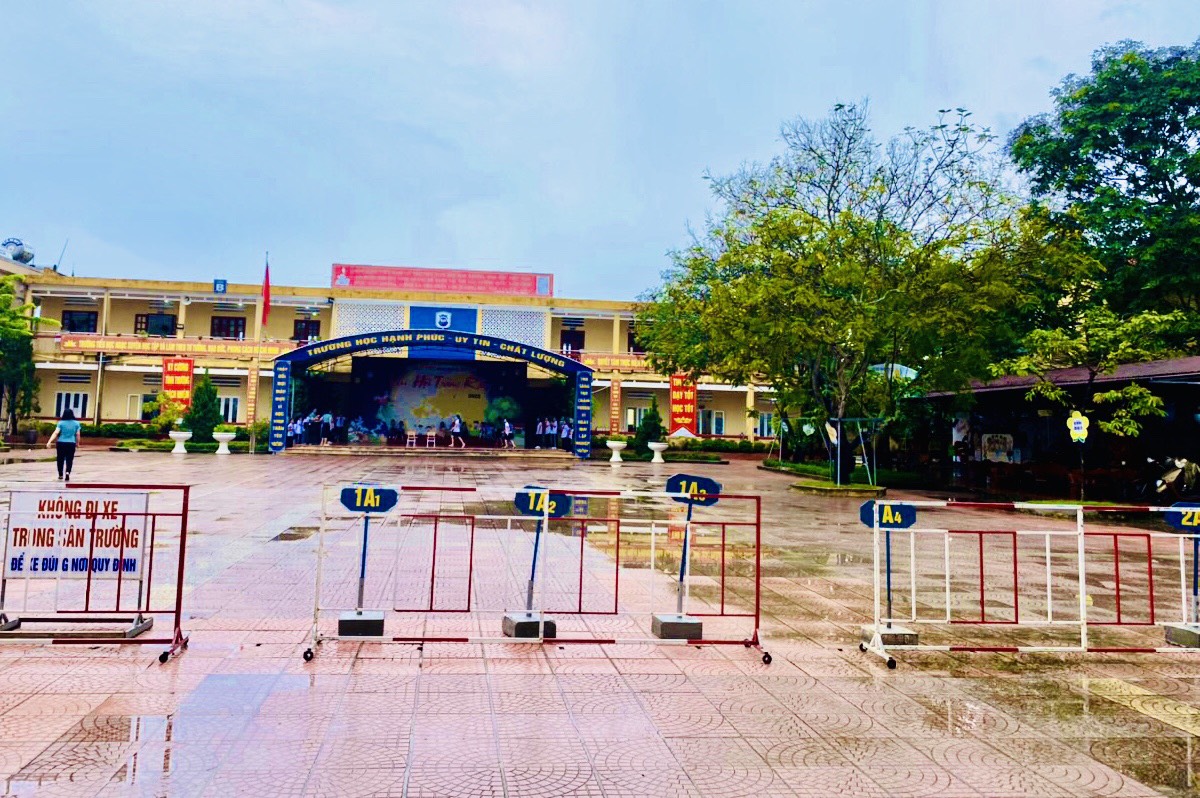 Trường tổ chức cho phụ huynh dựng xe trên vỉa hè theo khu vực từng lớp sau đó vào trong phía sân trường được cho phép để đón học sinh nhằm giảm áp ùn tắc phía cổng trường.