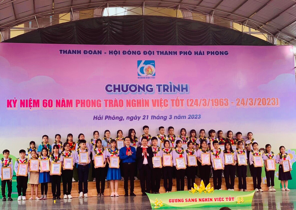 Thiết thực thi đua lập thành tích chào mừng kỷ niệm 92 năm Ngày thành lập Đoàn TNCS Hồ Chí Minh (26/3/1931-26/3/2023). Ngày 21/3/ 2023 Ban Thường vụ Thành đoàn tổ chức Chương trình kỷ niệm 60 năm phong trào “Nghìn việc tốt” với chủ đề “Thiếu nhi Hải Phòng - Tiếp bước cha anh - Làm nghìn việc tốt”. Chương trình nhằm ôn lại truyền thống 60 năm phong trào “Nghìn việc tốt”, qua đó biểu dương, tôn vinh các em đội viên, thiếu nhi có thành tích xuất sắc trong học tập, rèn luyện, hoạt động Đội và trong các phong trào thi đua làm “Nghìn việc tốt”; đồng thời tạo phong trào hành động thiết thực, góp phần nâng cao chất lượng các hoạt động và xây dựng tổ chức Đội TNTP ngày càng vững mạnh.
