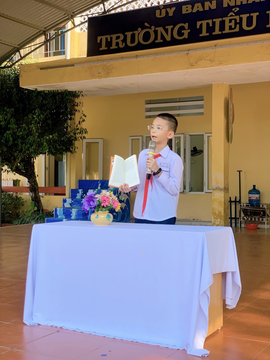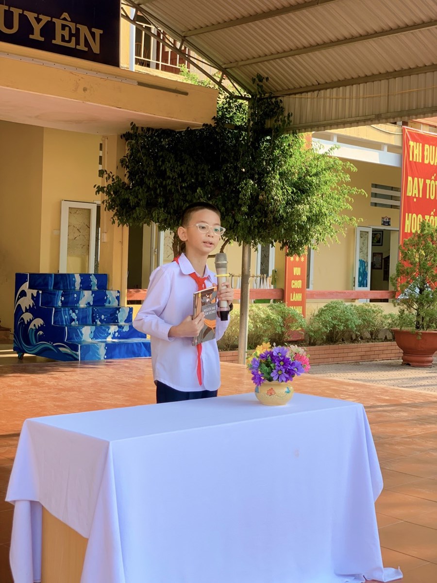 Trong buổi giới thiệu sách tháng 10, em Đặng Trường An học sinh lớp 5A2, đã giới thiệu đến các bạn học sinh toàn trường cuốn sách hay “ Người mẹ cầm súng” . Hy vọng rằng cuốn sách sẽ là tài liệu bổ ích giúp các em hiểu hơn về những công lao to lớn góp phần vào công cuộc giải phóng dân tộc, giải phóng đất nước của những người Mẹ - Mẹ Việt Nam anh hùng.