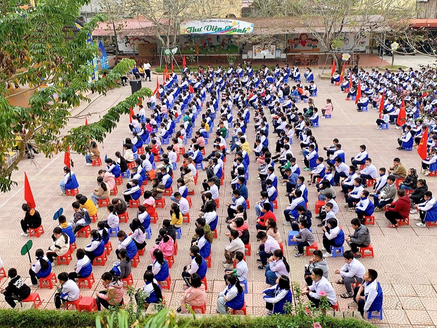 Học sinh toàn trường trong buổi giới thiệu sách tháng 12