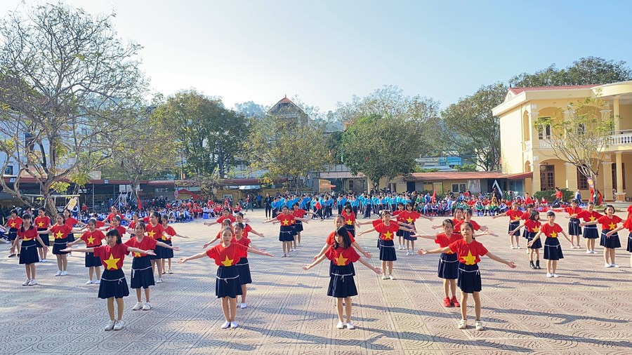 Hội khoẻ Phù Đổng năm học 2022-2023, học sinh khối lớp 4 mang đến 2 tiết mục đặc sắc: Bài thể dục phát triển chung và bài nhảy Flashmob “Việt Nam tử tế”: