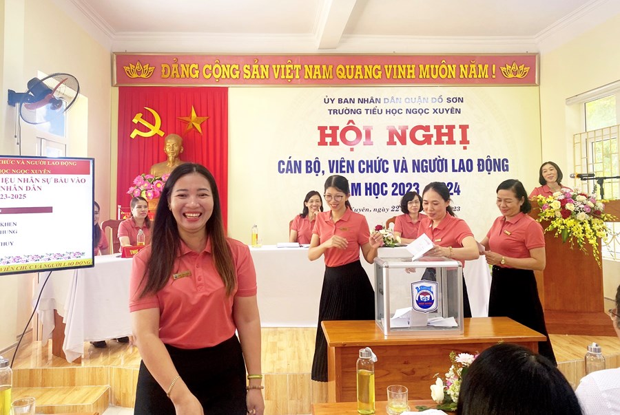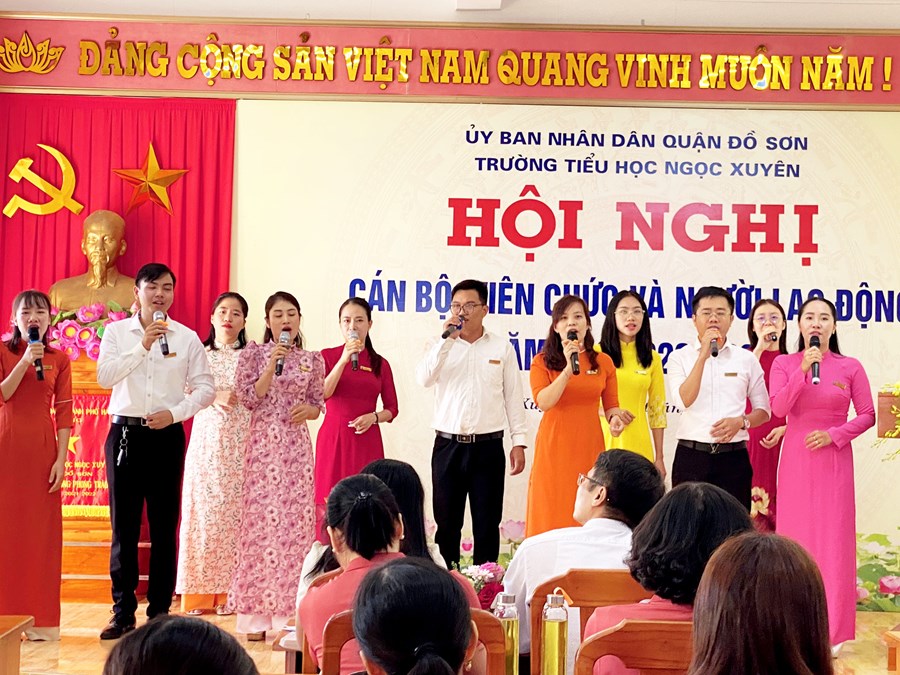 Hội nghị cán bộ công chức, viên chức và người lao động năm học 2023-2024 của trường Tiểu học Ngọc Xuyên đã thành công tốt đẹp. Hội nghị đã thông qua Nghị quyết với các nội dung: công tác chính trị tư tưởng; công tác thi đua; sự phối hợp với thủ trưởng cơ quan đơn vị với BCH công đoàn, đồng thời kêu gọi toàn thể CBVCNLĐ phát huy những thành tích đã đạt được, phấn đấu thực hiện thắng lợi nhiệm vụ chính trị, tích cực đóng góp công sức và trí tuệ xây dựng Nhà trường ngày một vững mạnh..