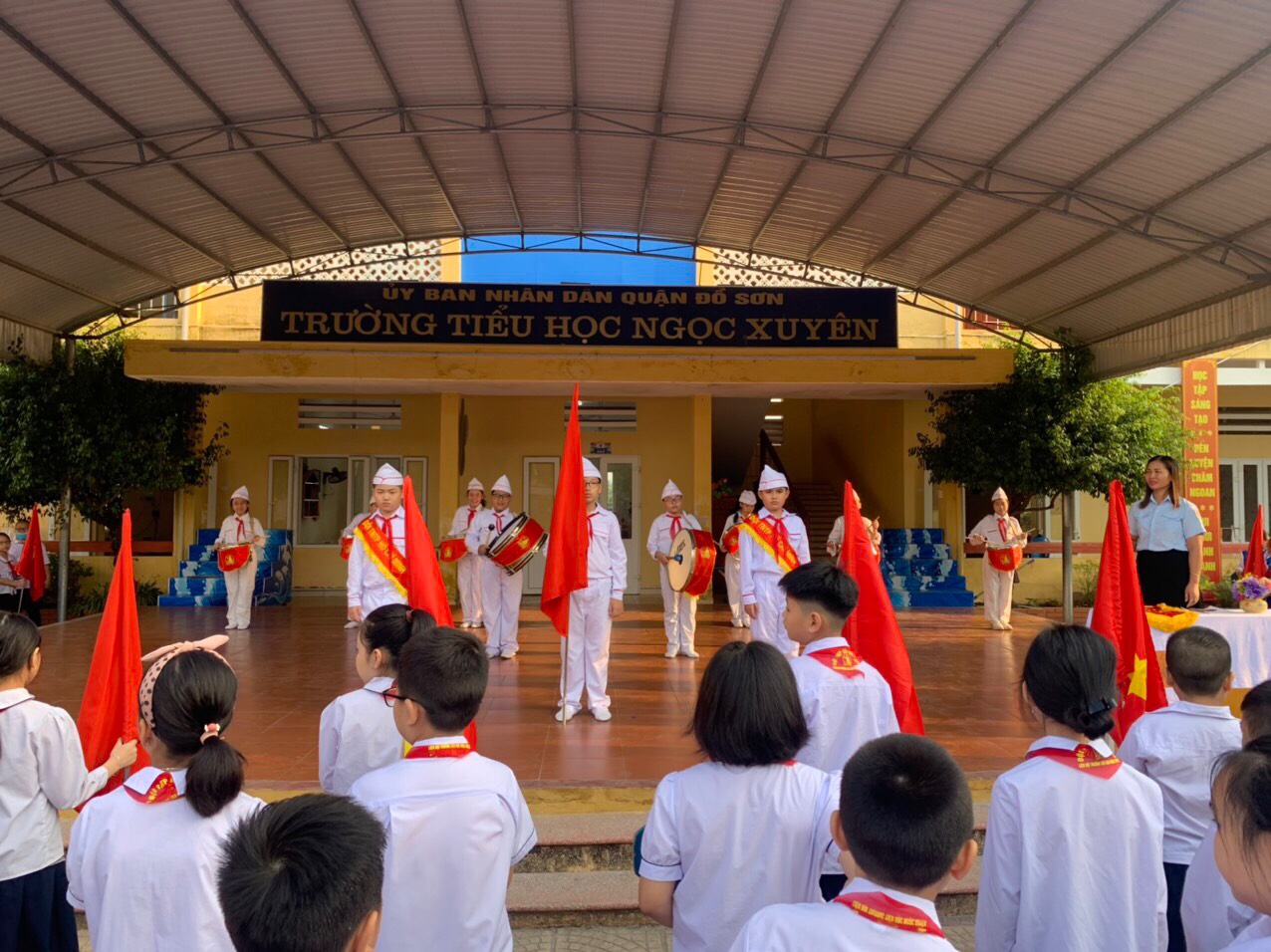 Sáng thứ hai, ngày 7 tháng 11 năm 2022. Liên đội trường Tiểu học Ngọc Xuyên tổ chức Chào cờ đầu tháng với sự tham dự của Ban giám hiệu nhà trường, các thầy cô giáo trong hội đồng sư phạm và toàn thể các em học sinh.