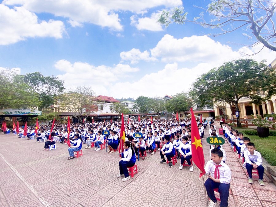 Sau phần nhận xét nề nếp là phần trao cờ cho 5 lớp dẫn đầu 5 khối đó là lớp: 1A3, 2A2, 3A4, 4A3 và 5A1.