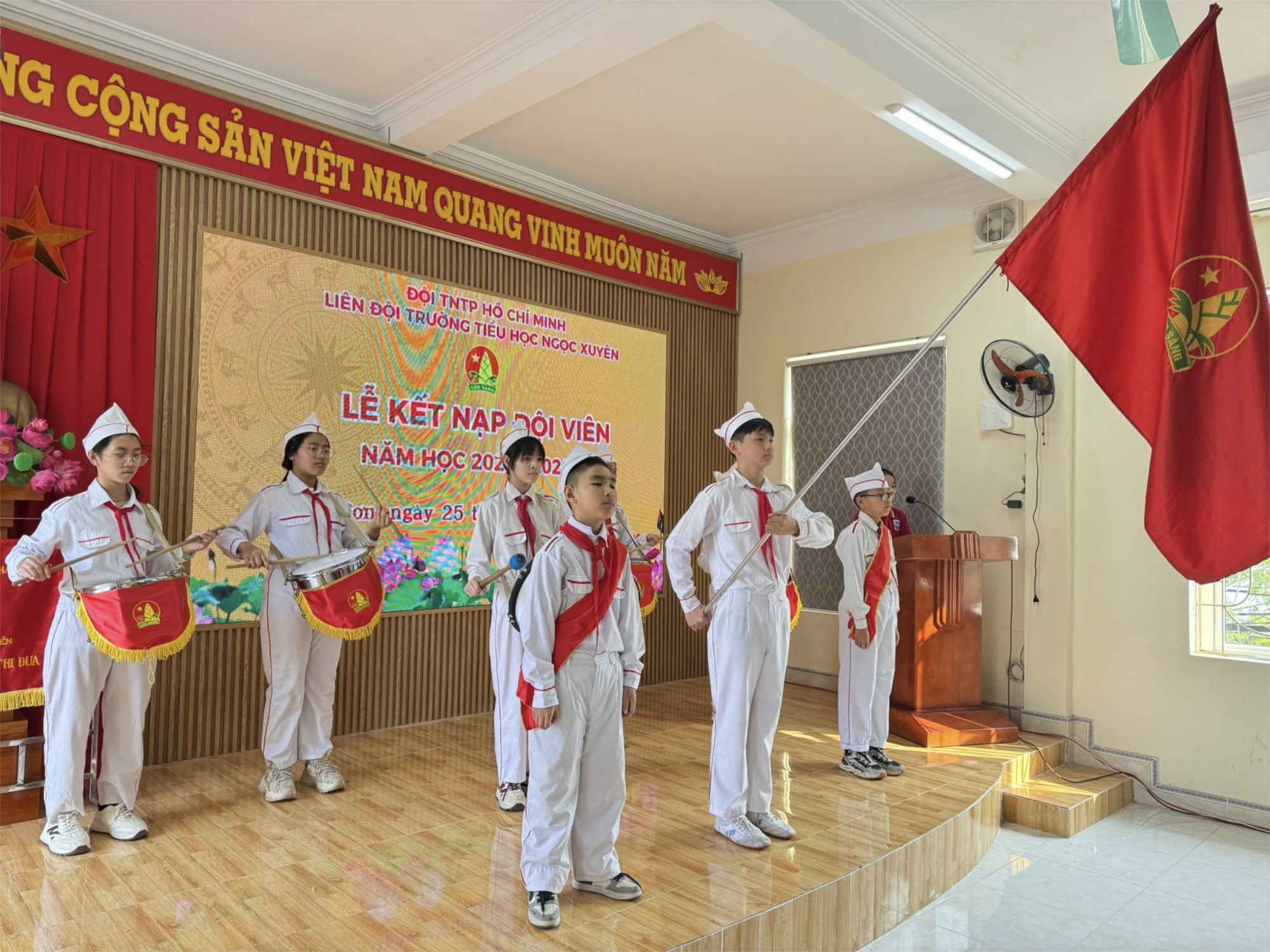Được đứng trong hàng ngũ Đội Thiếu niên Tiền phong Hồ Chí Minh là vinh dự, niềm tự hào đối với các em. Vì từ hôm nay, các em được mang trên vai chiếc khăn đỏ thắm màu cờ Tổ Quốc. Màu khăn đỏ như nhắc nhở các em phải phấn đấu vươn lên không ngừng để trở thành Đội viên tốt, xứng đáng là con ngoan trò giỏi – cháu ngoan Bác Hồ. Giây phút thiêng liêng này sẽ là kỷ niệm đẹp của tuổi học trò của các em.