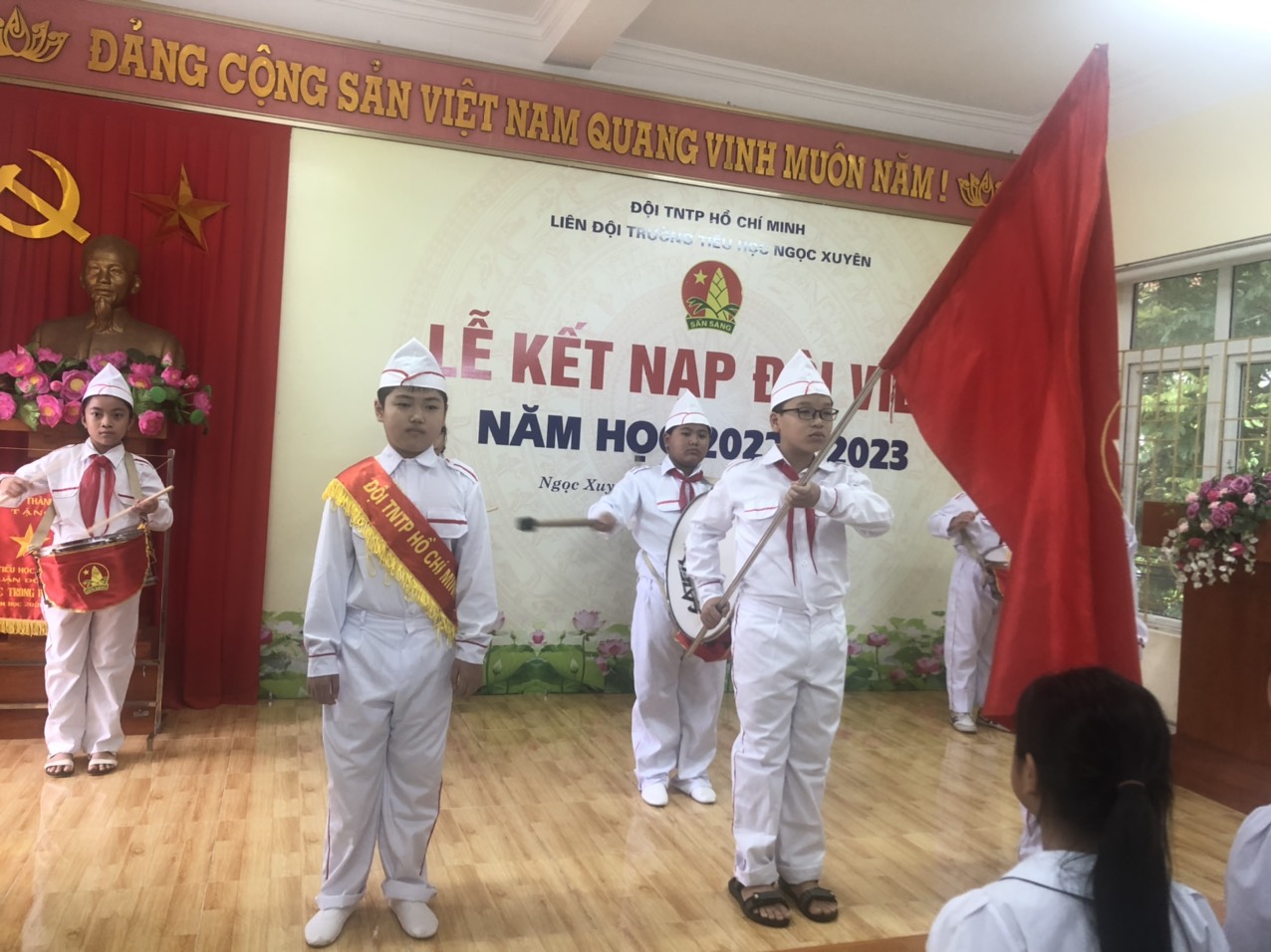 Liên đội trường tiểu học Ngọc Xuyên đã tổ chức Lễ kết nạp đội viên cho các em Nhi đồng khối lớp 4-5 (đợt 1), năm học 2022-2023. Các em được kết nạp đội viên hôm nay đều là những Nhi đồng chăm ngoan, có thành tích học tập tốt và tích cực tham gia phong trào, hoạt động của nhà trường.