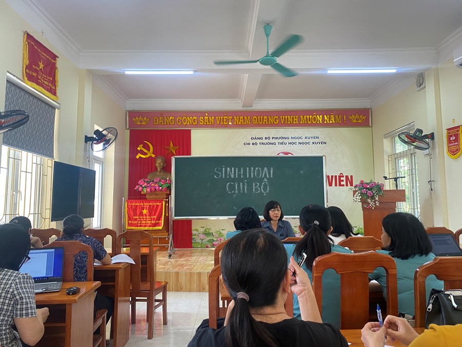 triển khai và quán triệt nghị quyết, chủ trương, chính sách mới của Đảng, Nhà nước hoặc lồng ghép các nhiệm vụ chính trị trọng tâm của chi bộ nhà trường như các chuyên đề: Chỉ đạo đổi mới không gian lớp học, vận động kế hoạch tài trợ về cơ sở vật chất thiết bị đảm bảo thực hiện chương trình Giáo dục phổ thông 2018; nâng cao trình độ theo chuẩn cho đội ngũ giáo viên theo quy định Luật Giáo dục 2019, bồi dưỡng năng lực dạy học, giáo dục và công nghệ thông tin cho đội ngũ đảng viên, giáo viên; nâng cao chất lượng đại trà kết hợp phát hiện, bồi dưỡng học sinh có năng khiếu