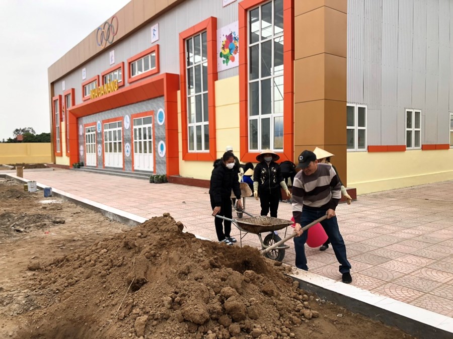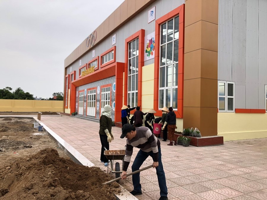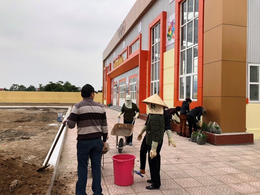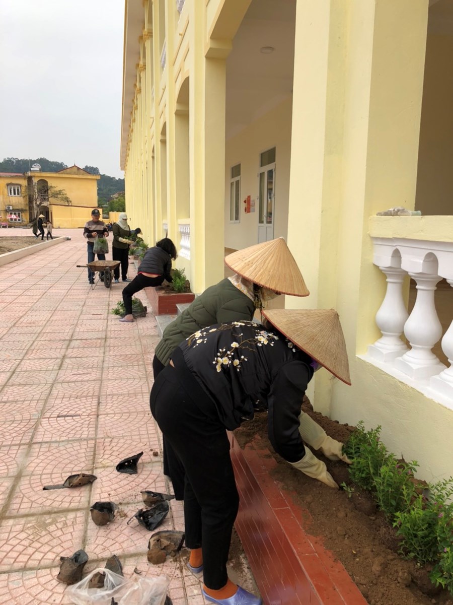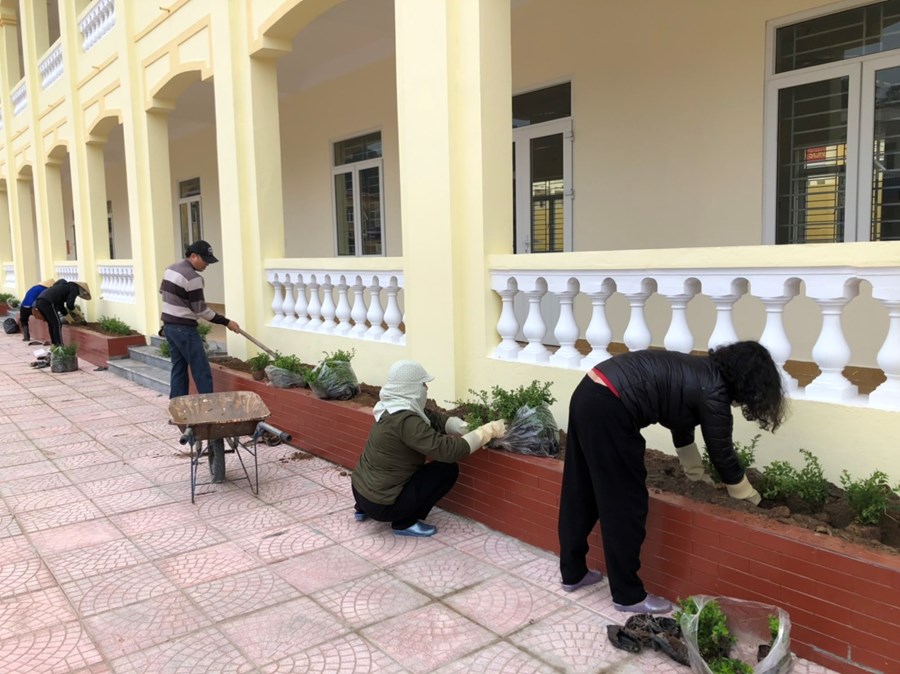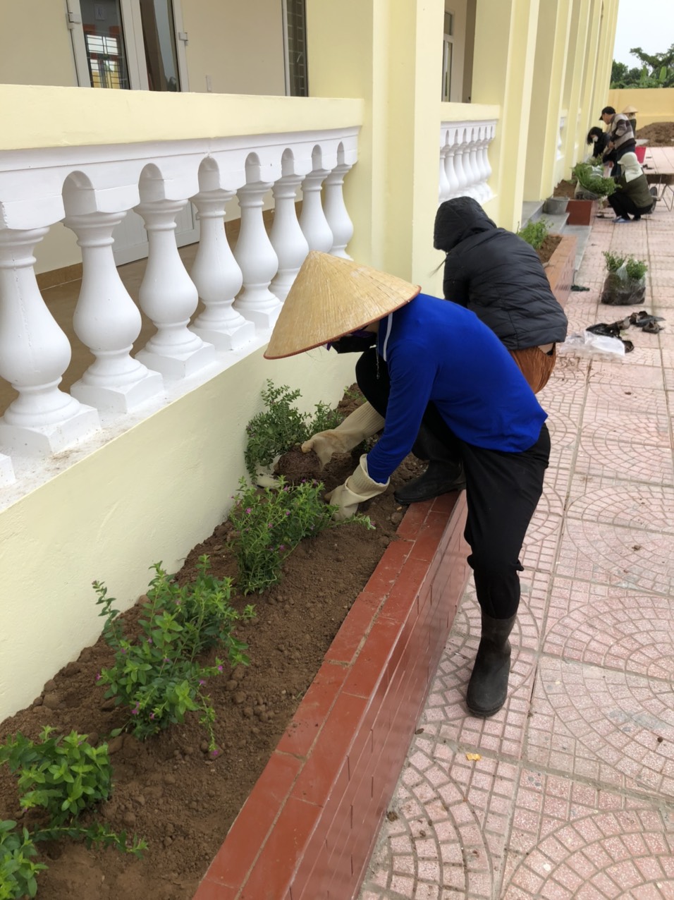 Trường Tiểu Học Ngọc Xuyên đã mua hơn 500 cây hoa Hoàng Yến và được các thầy cô giáo cùng nhân viên trồng tại dãy nhà mới.